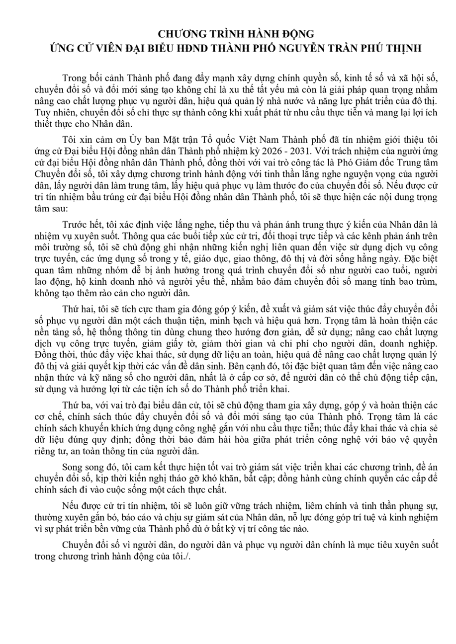 Dưới đây là tóm tắt tiểu sử và chương trình hành động của đồng chí: